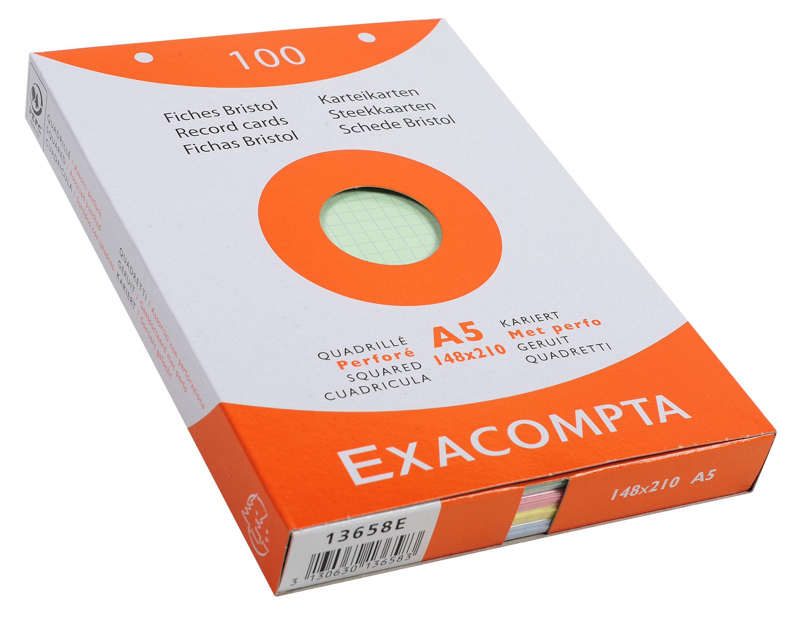 fiches bristol 100×150 Q5mm blanches sous film 100 perforées